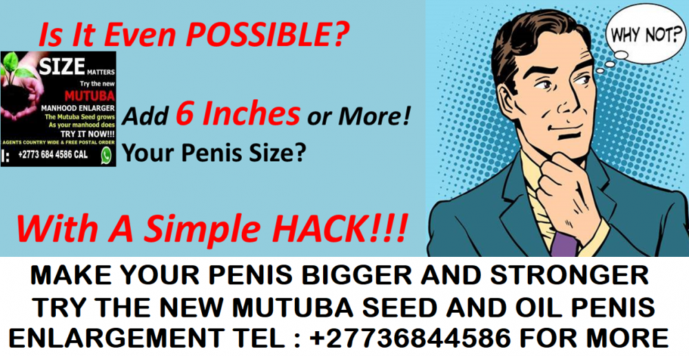 Welcome to Size Up !! Whether you are looking to add length or girth size to your penis or if you would like to improve your erection power, help premature ejaculation or straighten a curved penis then this Size Up system is for you. How Does Penis Enlargement Work? Lets be honest, every man wants a larger, healthier penis. Penis Enlargement is not that complicated to understand. The penis' main function is to enlarge, this process happens when we get an erection. Enlarging this organ that has a main function to enlarge is not as complicated as it may appear. The penis has three main chambers: two larger ones on top and one smaller chamber on the bottom. The medical terms for these chambers are: (Corpora Cavernous) and (Corpus Spongisum). When you get an erection, blood fills these chambers. The main blood holding tissue is the Corpora Cavernosa. Your penis size is determined by the amount of expansion that occurs within this cavity. Once the maximum is reached, you are at full erection. This is where our program can benefit you. The tissue in this chamber can be safely increased in size, to improve your penis size and we show you how. We deliver world wide. +27736844586