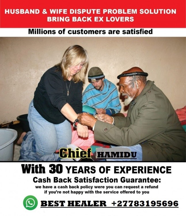 jealousy my husband's family hated me. In fact, he later left me and the kids for another woman, and asked for divorce. It was so painful. My kids and I suffered during this time. I visited church priests for help and all they did was to console me. I visited healers with no luck. I wasted a lot of money with no results. Luckily a caring dear friend took me to see Prof mama who had saved her marriage and whom he continues to consult upto today. I paid a R200 consultation fee and she accurately read my fortune and told me about all my problems without me saying a word. He used a mirror to show me real faces of people who were trying to pull me down. He performed special prayers for me, cleansed me from spells and bad luck. 3 months after these ceremonies, my husband came back home asking for forgiveness from me and our kids. We are now very happy, and my husband's family have recently apologized for the problems they have put me through. All thanks to Prof Call +27783195696