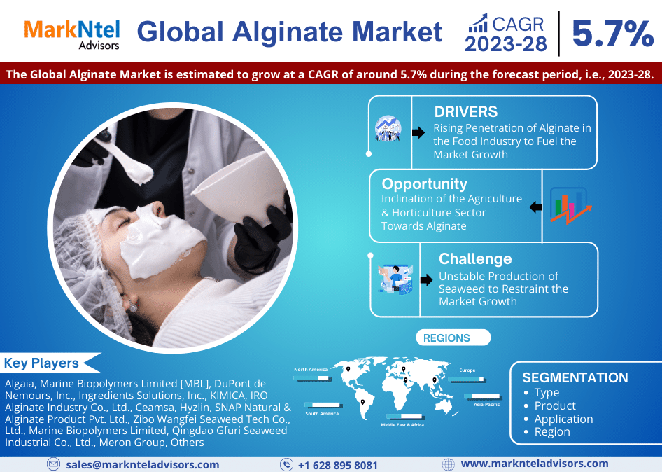 MarkNtel Advisors recently published a detailed industry analysis of the Global Alginate Market. The report covers growth trends, geographical marketing strategies, challenges, opportunities, and drivers influencing the market.