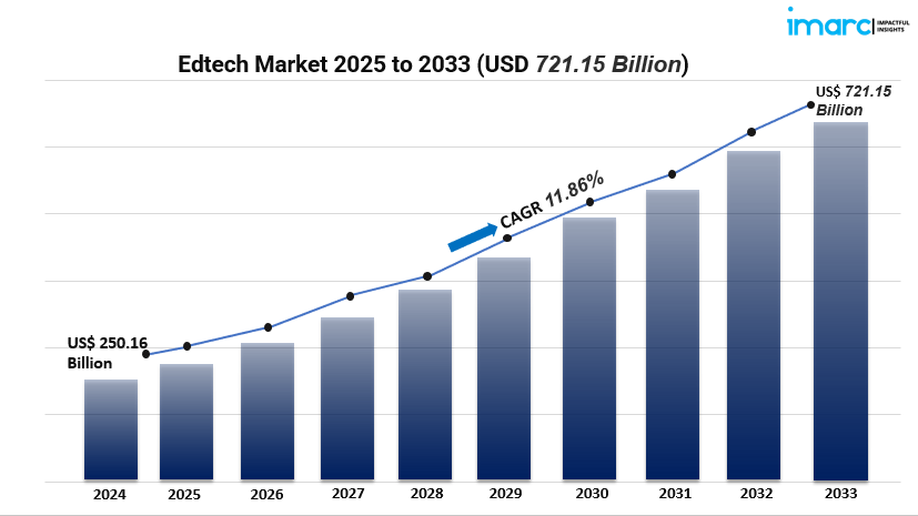 - Global EdTech market valued at roughly USD X billion in 2024*, projected to grow to USD 721.2 billion by 2033 at a robust CAGR.