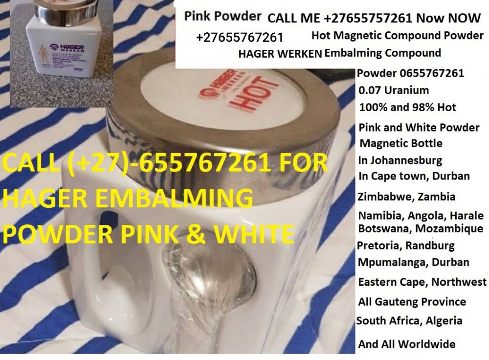 "⏭️(+27)-655767261⏭️ " SUPPLIER OF HAGER WERKEN EMBALMING COMPOUND POWDER. in Johannesburg, Zimbabwe, South Africa, Zambia, Namibia, Angola.  【+27-655-767-261】Hager weaken embalming powder is Used for preserving human remains by treating them (in its modern form with chemicals)to forestall decomposition. The intention is to keep them suitable for public display at a funeral, for religious reasons, or for medical and scientific purposes such as their use as anatomical specimens.[1] The three goals of embalming are sanitization, presentation and preservation (or restoration). 【+27-655-767-261】Embalming has a very long and cross-cultural history, with many cultures giving the embalming processes a greater religious meaning. Specific uses are: sanitization, presentation and preservation (or restoration). Types of embalming powder are dependent on the purity and colour. PURITY ON   COLOR.  【+27-655-767-261】Pink 98%. White 100%, hot compound 100%. Radioactive and compound at more affordable prices. Call the Quality merchants at +27655767261. Hager weaken embalming powder price with discounts depending on the quantity and refine, Starting from one kilogram upwards. Originally made in Germany, Branded as Hager Weaken Brands Ltd. Only serious buyers should contact  customer service distributor on CALL 【+27-655-767-261】