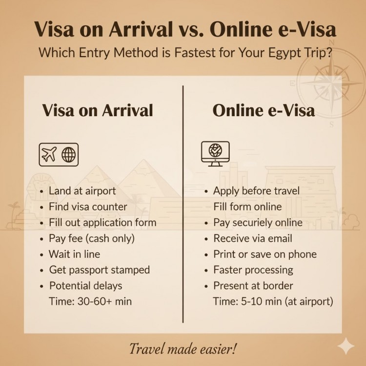 Conclusion: For a guaranteed speedy entry, the online Egypt E-Visa is the undisputed champion. By moving the bureaucratic steps online and completing payment beforehand, you save precious minutes—or even an hour—at the airport.