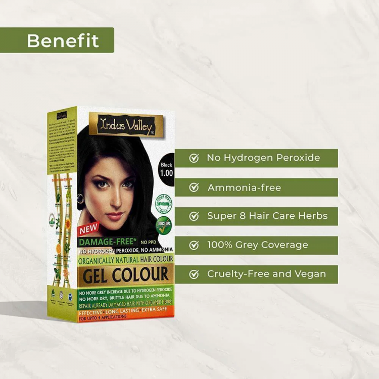 Indus Valley Damage-Free Gel Hair Colour: Provides full grey coverage while nourishing hair.