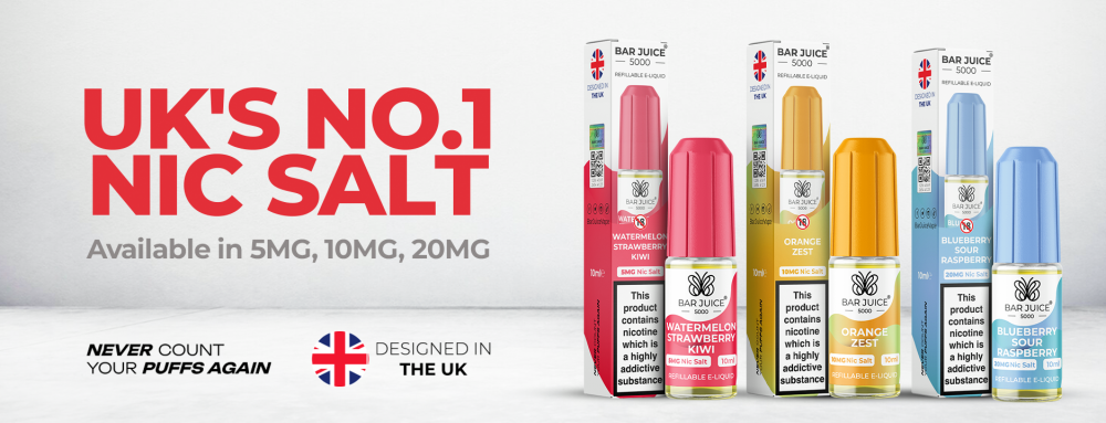 If flavour variety, smooth nicotine delivery and value are what you’re after, Bar Juice 5000 Nic Salt e-liquids should be at the top of your shopping list. With dozens of exciting flavour options and reliable performance in open pod systems, this brand continues to win over vapers across the UK.