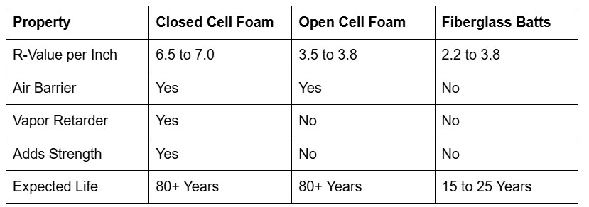 Closed cell foam is a rigid material that bonds to the surfaces it covers, increasing the racking strength of the walls. This added rigidity helps the structure resist high winds and can prevent the roof from lifting during severe storms. It acts as a secondary reinforcement for the building frame.