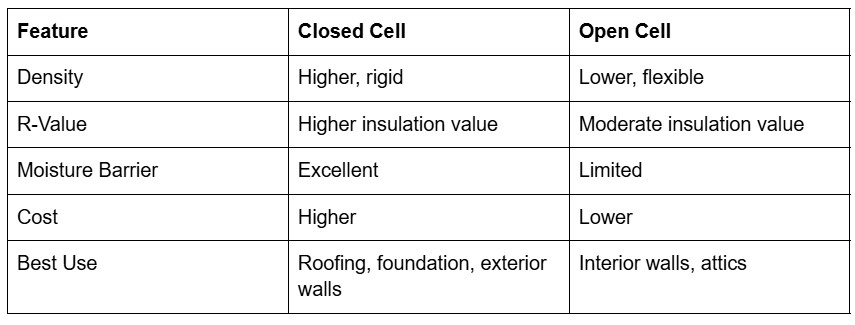 Choosing the right spray foam is essential for commercial projects. Below is a comparison: