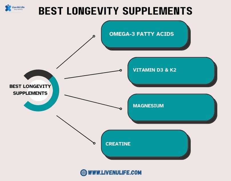 The best longevity supplements do not work like magic pills; instead, they address the underlying causes of aging, such as oxidative stress, inflammation, mitochondrial decline, and cellular damage. When used consistently in conjunction with a healthy diet, sleep, and exercise, these supplements can help you extend your healthspan rather than just your life.