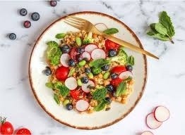 Mix fresh spinach, blueberries, strawberries, and walnuts. Add a balsamic vinaigrette for a sweet and tangy finish. The fiber from the berries and spinach keeps you full, while the walnuts contribute heart-healthy fats.